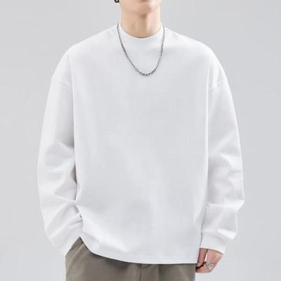 60 Bavlnené tričko s dlhým rukávom, ťažká gramáž, malý výstrih, pánske, jednofarebné, na jar a jeseň, sveter, okrúhly výstrih, biele základné tričko, pánske