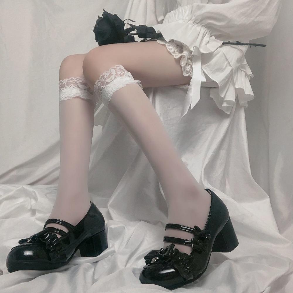 Japanese JK White Lace Pure Calf Stockings Lolita Spring and Summer Thin Transparent Tube Socks