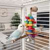 Bird Block Knots Tearing Toy Wooden Bird Toy With Colorful Acrylic Beads Solid Wood Blocks Adjustable Ropes Hooks For Cockatoos