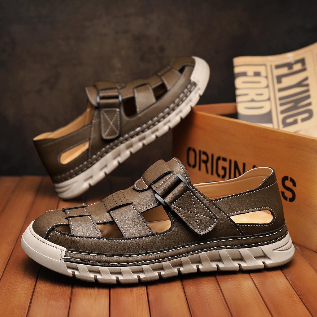 Summer Men's Genuine Leather Sandals Hollow Casual Shoes Beach Sandals