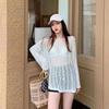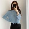 Top Spicy Girl Hollowed Out Striped Sunscreen Ice Silk Knitted Sweater Women's Spring and Summer Cover Thin Version