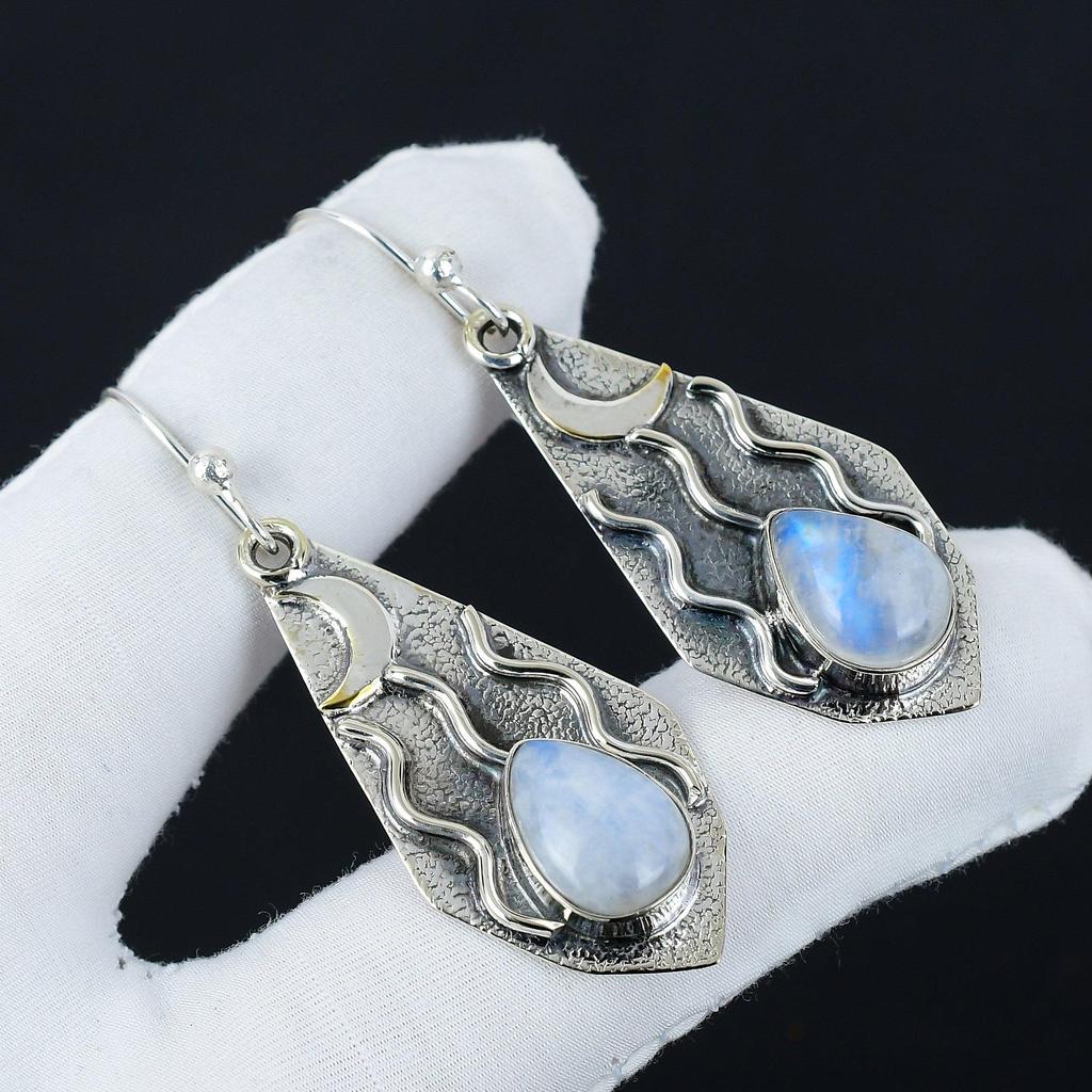 Natural Rainbow Moonstone Gemstone Earrings, 925 Sterling Silver Earring, Handmade Boho Silver Jewelry Dangle Earrings, Party Wear Gifts