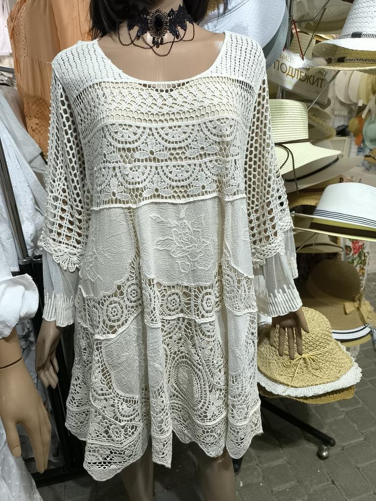 DIMANAF 2025 New Summer Women Long Basic Knitted Dress Sleeve Fashion Lace Dresses Casual Loose