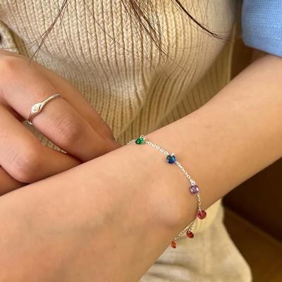 Fashion S925 Sterling Silver Daily With Colored Diamond-Encrusted Five-Pointed Star Stacked Women'S Bracelet