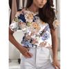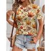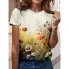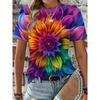 Dámske Krásne Kvetinové Potlačené Tričká Krátky Rukáv Topy 3D Potlače O-Výstrih Letné Bežné Dámske Oblečenie