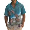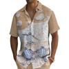 Summer Fashion Retro Ocean Animals Turtle Print Men's Short Sleeve Shirt Street Casual Daily Oversized Men Shirts Oversized Tops