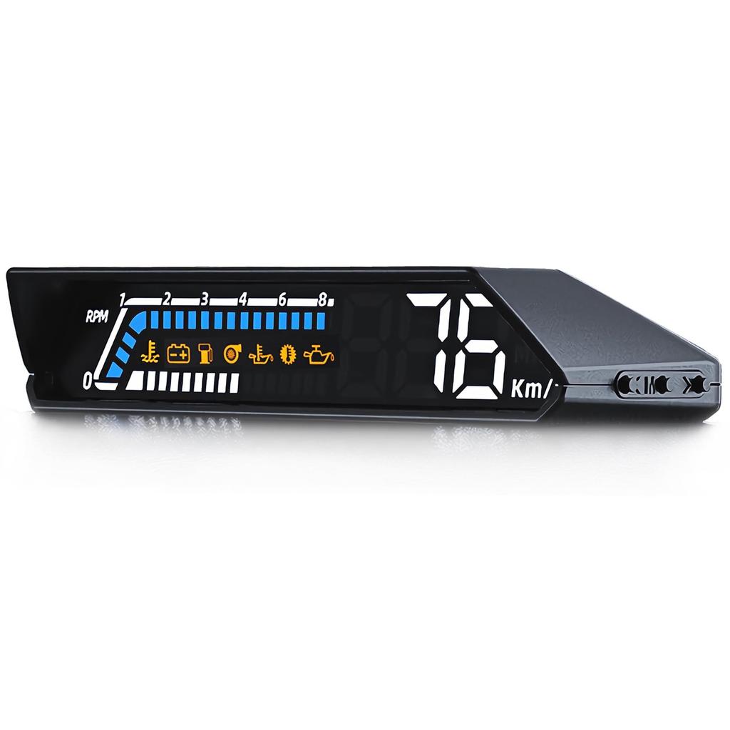 Product Description: S100 is one of the first dual-screen structure combination display HUD on the market, front display + windshield projection. It can display the engine load status in real time and the large font display is clear.