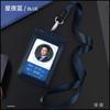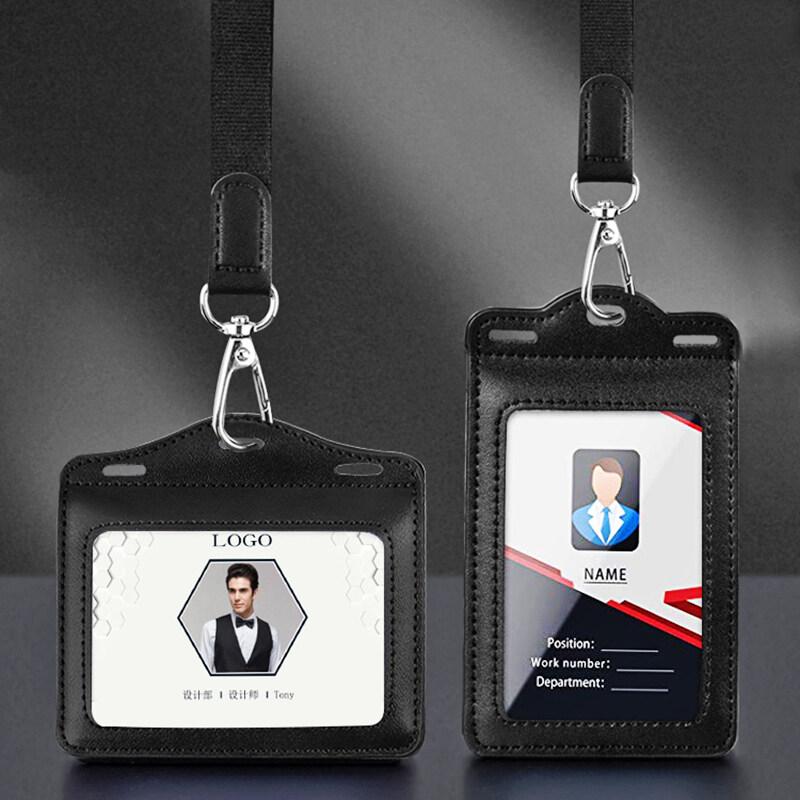 Badge Holder Trifold with Lanyard Leather Card Holders and Clear ID Window for Office Staffs Student Teacher Couriers Formal Classic Black
