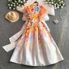 Elegant Floral Print Long Dresses Women Summer Holiday Ruffle Sleeve One Piece Wrap V Neck Vintage Retro Party Dresses Evening