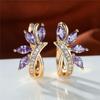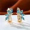 Cute Female Blue Green Stone Clip Earrings Charm Gold Color White Zircon Stone Wedding Jewelry For Women