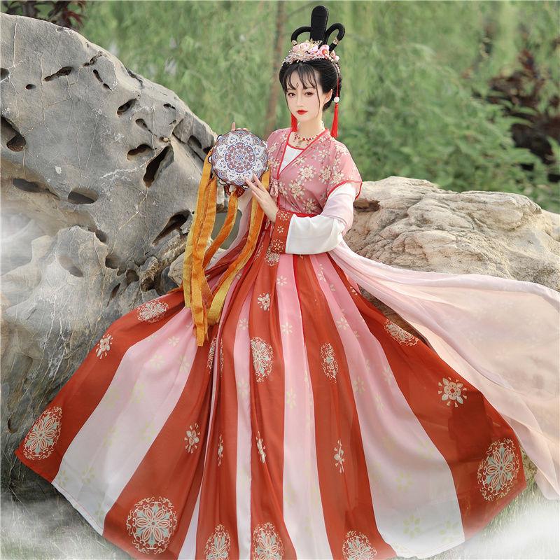 Chinese Tang Dynasty Style Hanfu Suit For Women Three-piece Set Tang Bei Zi Waist Skirt