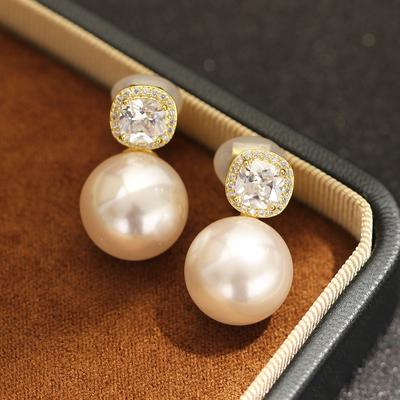 Pearl Stud Earrings Advanced Sense Anti-Allergic Square Face Ancient Cold Wind Universal Earrings