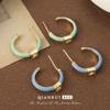 Retro Round Green French Light Luxury Temperament Premium Design Ear Buckle Earrings