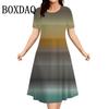 Women Plus Size Fashion Gradient Striped Print Summer Loose Elegant Ladies Clothing Casual Short Sleeve Party Dresses