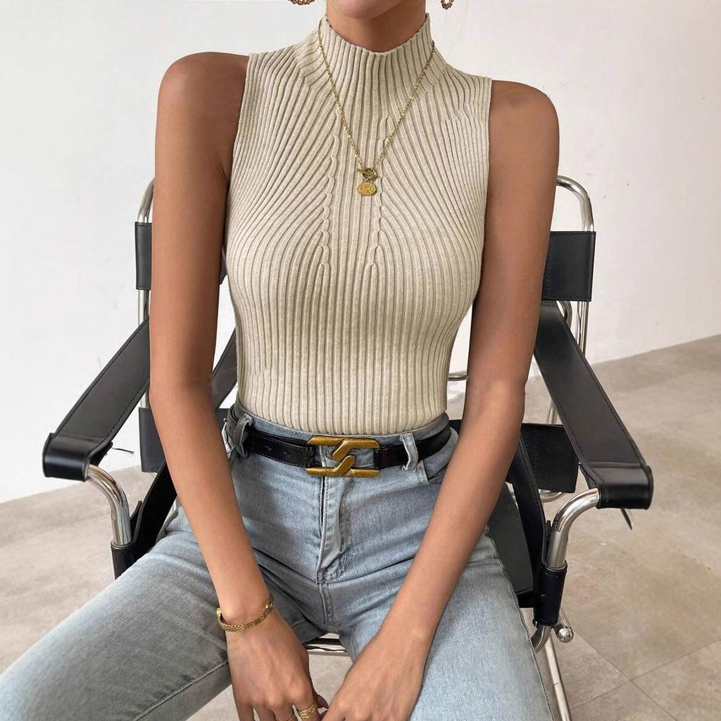 Women's Half High Neck Pit Stripe Tank Top