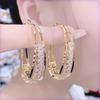 Gold Color Crystal Stone Hoop Earrings Twisted Metal Shape Silver Plating New Fashion Women Earrings Party Jewelry Birthday Gift