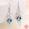 925 Silver Hollow Blue Crystal Long Drop Earrings For Women Fashion Wedding Jewelry Gift