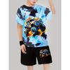 2-Piece Boys Casual Summer Outfit Set, Monster Truck Print Versatile Short Sleeve Tee & Shorts set