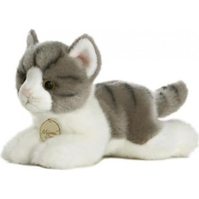 Chat en peluche - aurora - mini yoni - gris/blanc - 20 cm - pour enfants à partir de 18 mois