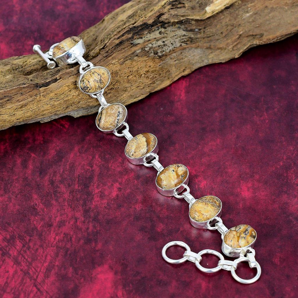 Obrázkový jaspis 925 Pevné striebro rýdzosti náramok, Ručne vyrobený náramok s drahokamami šperky, Darčeky pre manželku Úplne nový náramok