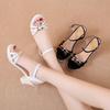 Women's Wide Laces Soft Leather Platform 2025 Summer Office High Heels Ladies Sandal Shoes For Women Casual Mother Shoes