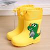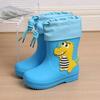 Animal Character With Contraction Rope Children Printed Rain Boot Low MOQ Easy on PVC Wellies Kid's Waterproof Cotton-padded