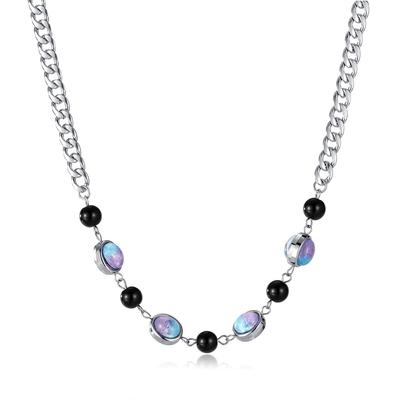 Oceľový náhrdelník s čírym krištáľom a korálkami tanzanitu LPS10ASD16 pre ženy