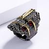 Exaggerated Retro Style Black Gold Three piece Set of Natural Garnet Ruby Boyfriend Ring Necklace Earrings Casual Jewelry