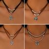 1PC Retro Imitation Turquoise Cow Head Collarbone Chain Beaded Necklace Set Ethnic Style Cactus Necklace