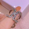 European and N Fashion Geometric Lines Plated Rose Gold Micro set Zircon Chain Ring Trend Ring Girl