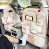 Car Seat Back Storage Bag Cute Cartoon Leather Multifunction Car Backseat Organizer Cup Holder Tissue Holder Anti Kick Pad