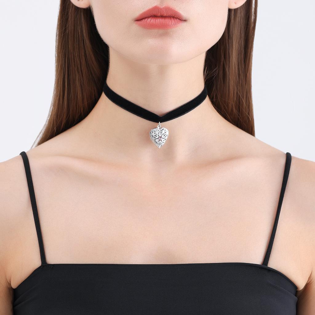 Jewelry Simple Neck Chain Black Ribbon Open Lid Diamond Love Necklace Female Beauty Necklace