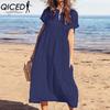 QICED Women's Fashion Summer Spring Solid Color Print High Waist Casual Dresses