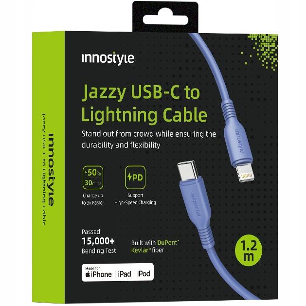 ☄️Innostyle Jazzy - USB-C - Lightning MFI kábel 1,2 mPonorte sa do sveta Innostyle, kde sa inovácia stretáva s eleganciou a funkčnosť je prepletená s odolnosťou. Kábel Jazzy, vytvorený pre tých, ktorí si cenia spoľahlivosť a rýchlosť, je jedinečnou kombináciou pokročilej technológie a sofistikovaného dizajnu, ideálny pre dynamický životný štýl.. S dĺžkou 1,2 metra, odolnosťou Kevlaru proti ohybu a podporou rýchleho nabíjania 2,4 A pre Apple, je to kábel, ktorý vám umožní vyťažiť maximum z každého dňa.Výhody:Kábel s certifikáciou MFI - Vyrobené pre iPhone, iPad, iPodOkamžité a bezpečné nabíjanieElegantný, moderný dizajnVystužené vláknami DuPont™ Kevlar®Vysokorýchlostný prenos dát 480 MbpsDvojnásobne vystužené káblové pripojenie k zástrčkePohodlná dĺžka 1,2 m7-stupňový bezpečnostný systémSúčasťou je Magic Tape na zviazanie káblaPodporuje Apple CarPlay
