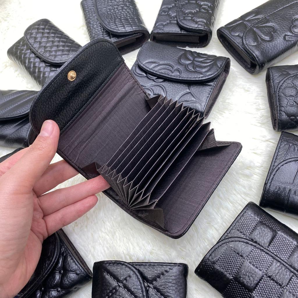 - Tieto kartové peňaženky v štýle harmoniky sa vyznačujú kompaktným a elegantným dizajnom.. Sú vyrobené z prvotriednej hovädzej kože a dodávajú sa v klasickej čiernej farbe s rôznymi vynikajúcimi textúrami, vrátane pletených, ďatelinových, jaštericovitých a kvetinových vzorov.. Dizajn s preklápacou chlopňou s magnetickým zapínaním na patentku dodáva nádych sofistikovanosti a bezpečnosti.