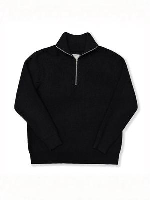 Calvin Klein Ss25 Early Spring Solid Color Half Zip Open Collar Knitted Sweater Men sweater Space-Black J326738