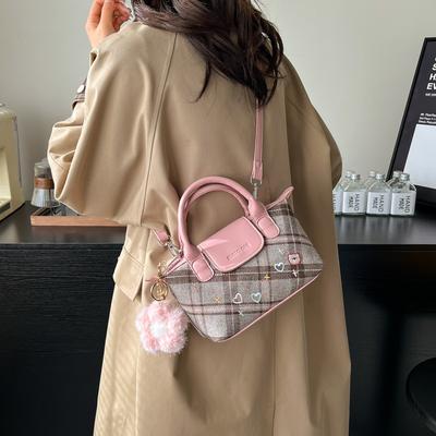 Red plaid New Year's bag women's 2025 new fashion portable messenger bag versatile casual small bag