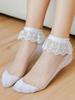Women Lolita Transparent Mesh Crew Socks Sweet Ruffled Lace Trim Bowknot Cute Love Heart Pattern Anime Princess Hosiery