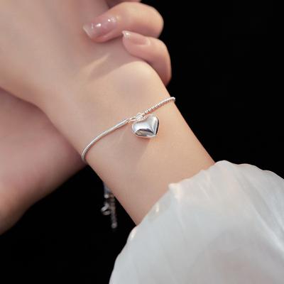 925 Sterlingové striebro Prívesok v tvare srdca s guľôčkou Nastaviteľný náramok Pre ženy Jednoduchý Temperament Módne šperky Darček k narodeninám