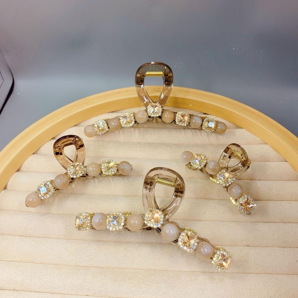 Fashionable and Elegant Square Crystal and Bead Hair Clip, Niche and Versatile Design, Hair Accessories for Exquisite Updos