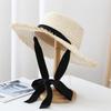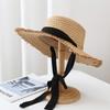 Hairy Woven Straw Hat Sun Hat Summer Flat Top Ribbon Tied Vacation Sun Hat Beach