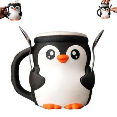 Kreatívny roztomilý keramický hrnček s tučniakom Hrnček Kreslený hrnček pre pár Šálka na kávu s viečkom a lyžičkou Študentský tepelne odolný pohár na vodu