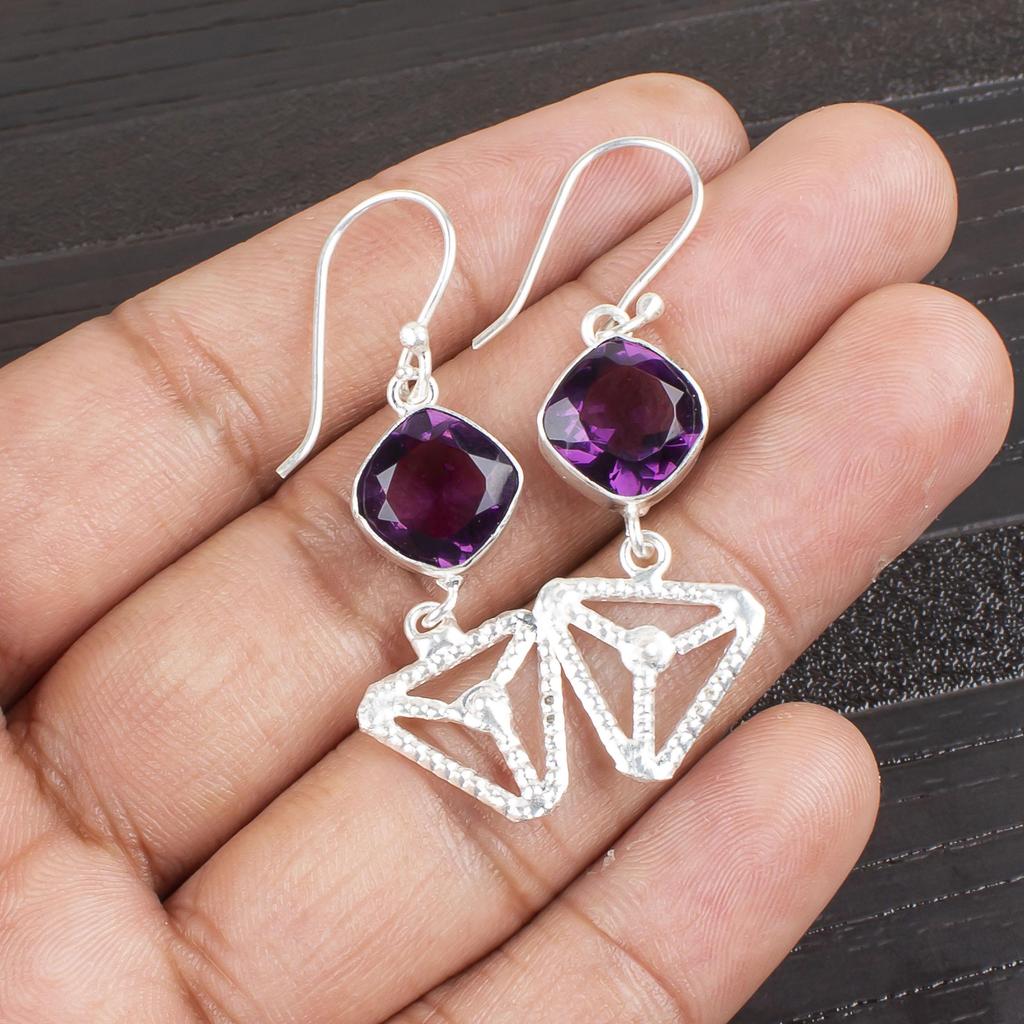 Wonderful African Amethyst Gemstone Jewelry, 925 Solid Sterling Silver Earrings, Balancing Silver Earrings Gift For Women