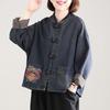 Dámska džínsová bunda s V-výstrihom, strednej dĺžky, s vreckami, vetrovka - Jesenná voľná jednofarebná