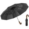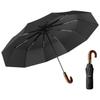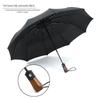 Reflective strip high-density fabric automatic 10-bone matte wooden handle three-fold umbrella business simple umbrella