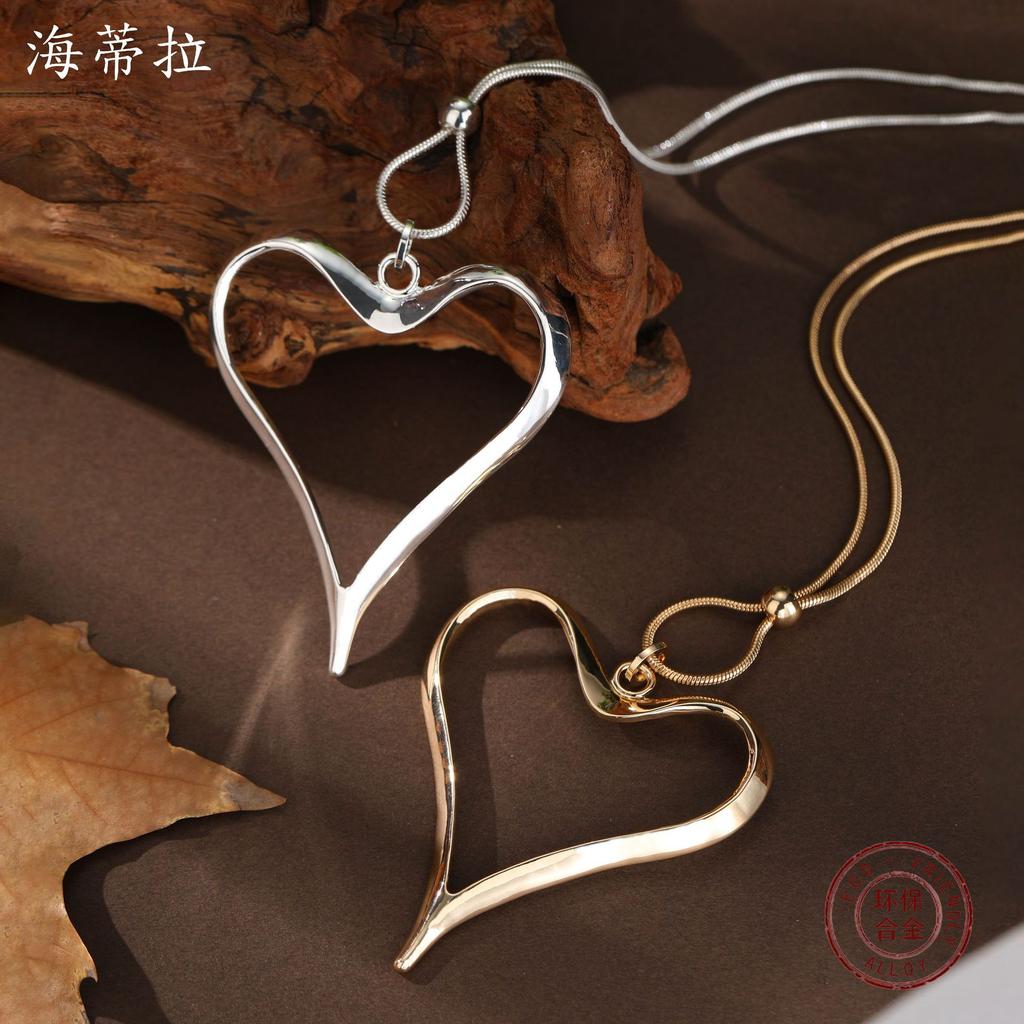 New hollow exaggerated love long necklace, women's hollow heart-shaped versatile long pendant
