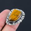 925 Sterling Silver Tiger's Eye Stone Mother Art Deco Handmade Cresent Moon Ring