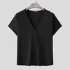 INCERUN Letné pánske tričká s krátkym rukávom a výstrihom do V, bežné priliehavé rebrované základné topy