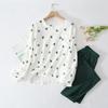 Nový jarný a jesenný dámsky bavlnený krepový odev v japonskom štýle, dlhé rukávy, nohavice, pyžamo, kaktus, pohodlné domáce oblečenie