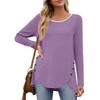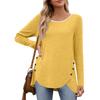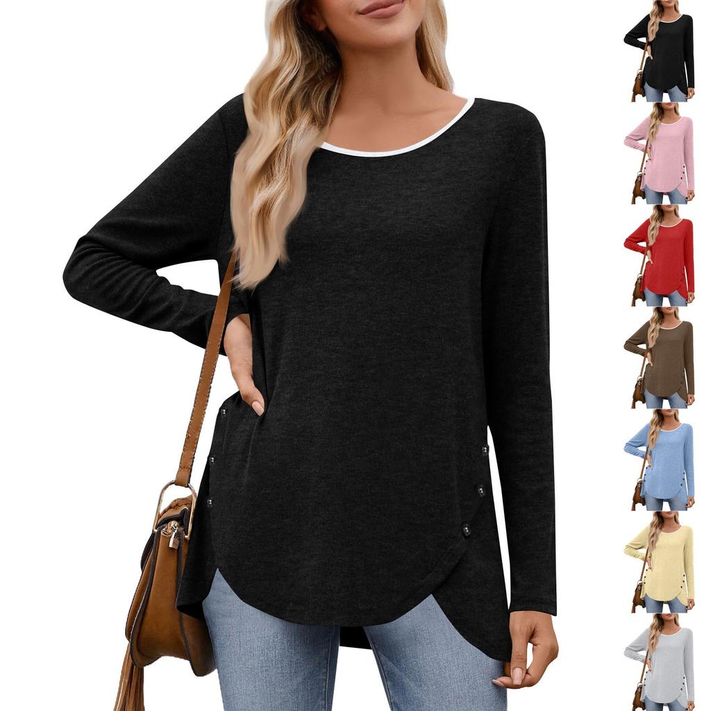 Women's Fashion Casual Solid Color Round Neck Long Sleeve Button Tops On Both Sides